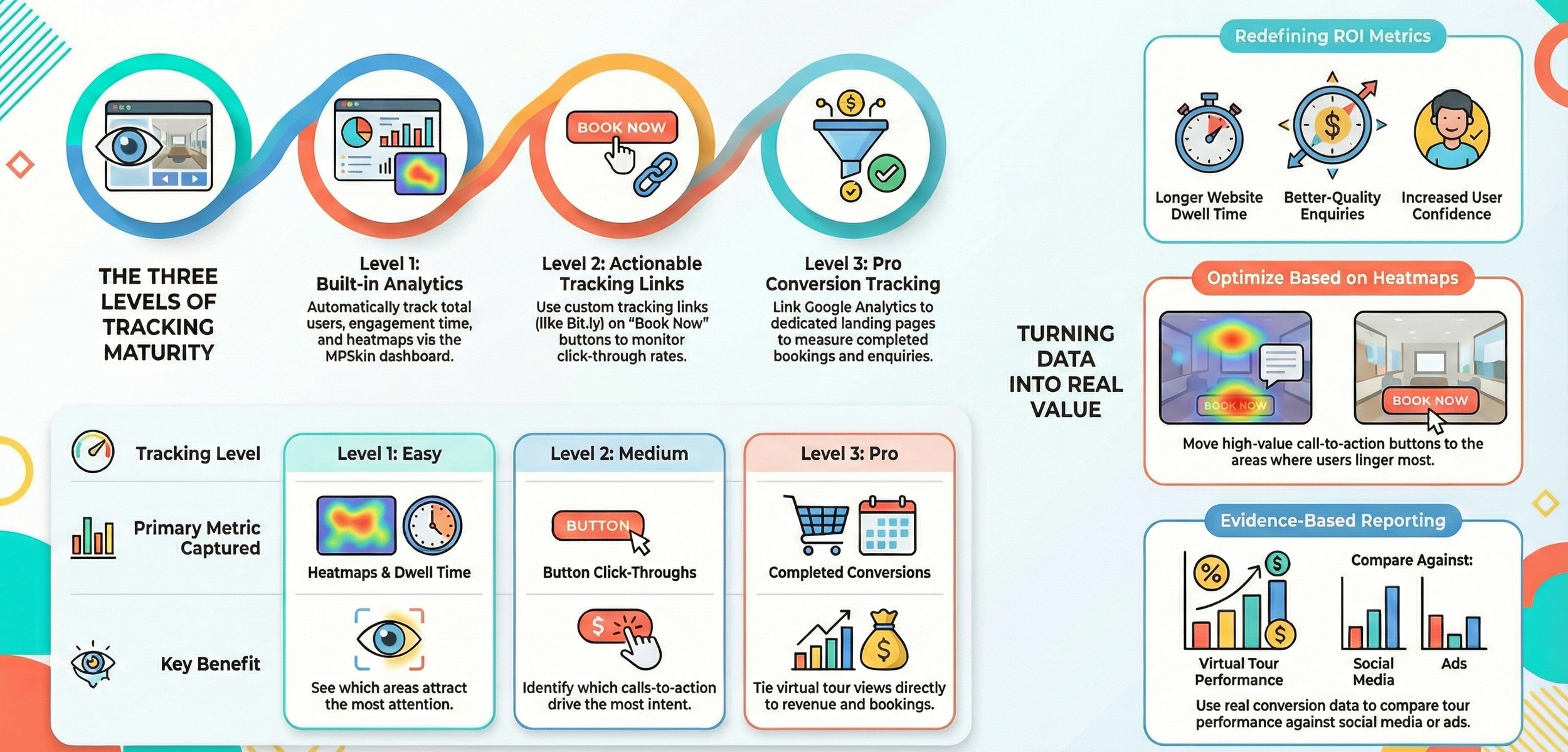 Let’s walk through this step by step, from simple tracking to more advanced options, so you can understand the ROI from your virtual tour in a way that actually makes sense.
